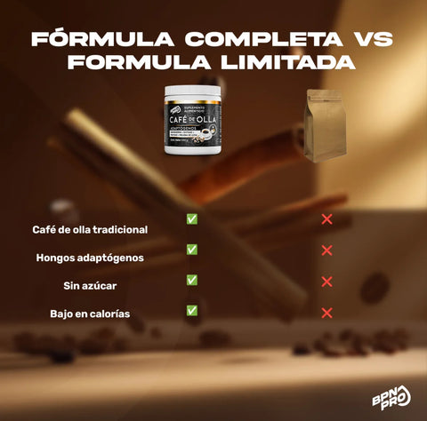 Descubre el Café Soluble de Olla con Hongos BPN Pro, una experiencia única que combina el sabor tradicional del café de olla con los beneficios de los hongos adaptógenos como Melena de León y Ganoderma Maitake. Este café potenciado no solo deleita tu paladar, sino que también ofrece propiedades que pueden contribuir a tu bienestar general.